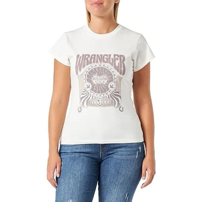 Wrangler Women's Shrunken Band TEE T Shirt, Worn White, XS