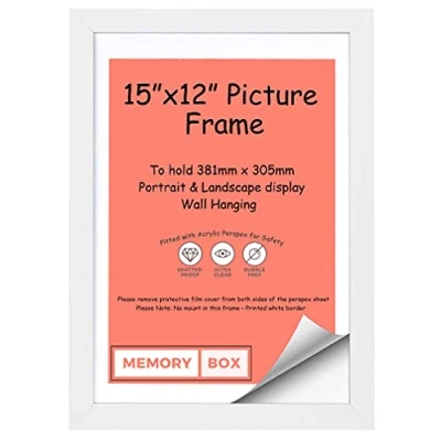 Memory Box Wrapped MDF Picture/Photo/Poster frame with Real Glass - Moulding 20mm Wide and 15mm Deep - (38.1 x 30.5cm) White 15" x 12"