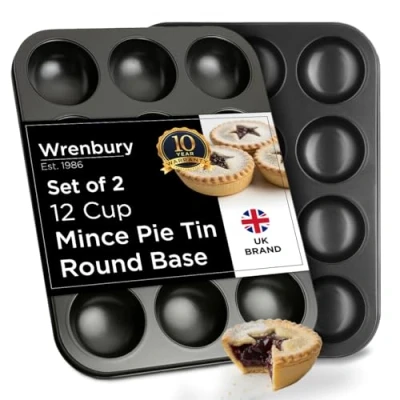 Wrenbury Mince Pie Baking Tray Set of 2 Shallow Jam Tart Tins 12 Cup Commercial Grade Non Stick Food Safe Easy Clean Patty Bun Tin