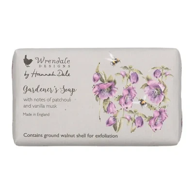 The Wrendale Designs Gardener's Soap is beautifully wrapped and makes a great gift for a green fingered friend.Featuring fragrances of patchouli and vanilla musks, this 190g bar of soap includes a textured paper wrap.Paraben & SLS free. CONTAINS GROUND WALNUT SHELL. Enriched with shea butter. Vegan friendly and cruelty free.Size: 10.5cm x 5.7cm x 3.5cm.
