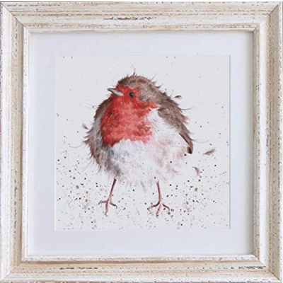 Wrendale Designs "Jolly Robin Framed Picture Distressed White