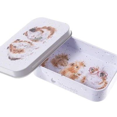 Harts of SturThe Wrendale mini tin is ideal for storing small items and keepsakes like, pills, paper clips, pins and jewellery.Featuring beautiful illustrations on the inside and top that features the guinea pig 'the trendsetter' design. Dimensions: 9.5 x 6 x 2cm.