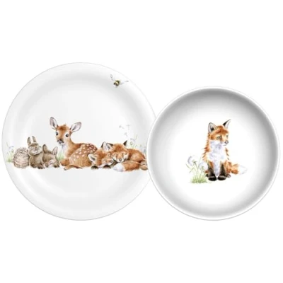 The Wrendale Designs Childs Plate & Bowl Set is perfect for adding an element of wildlife fun to lunch or dinner for your little one, adorned in fawns, bunnies and cubs to reflect the rural countryside. This dining set allows them full independence during breakfast, lunch and dinner, encouraging them to choose what next to eat from their plate or bowl. The this dinner set is perfect for everyday meals or for packing for a picnic.Made from 100% Melamine.Dishwasher safe.