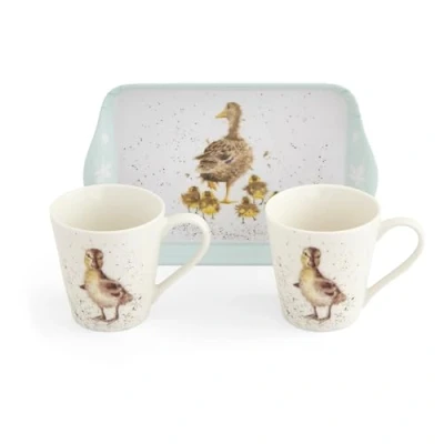 Harts of SturSpread some springtime joy with this Royal Worcester Wrendale Designs matching mug and tray set.Exquisitely decorated with watercolour duckling designs by Lincolnshire artist - Hannah Dale, this endearing set includes two porcelain mugs and a melamine tray, which can be popped in the dishwasher for easy cleaning. The perfect size for entertaining a friend.180ml mug capacity | Tray dimensions: 21cm x 14cm.