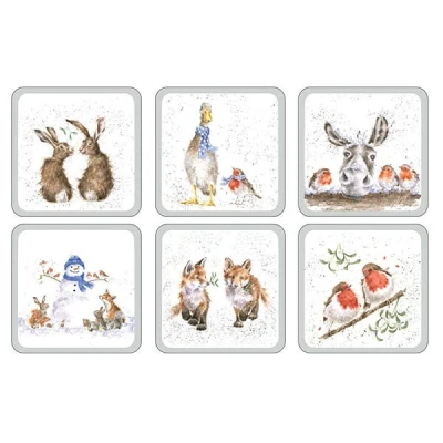 Wrendale Designs Set Of 6 Festive Animal Christmas Coasters