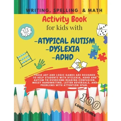 Writing, Spelling & Math Activity Book for kids with ATYPICAL AUTISM, ADHD, DYSLEXIA: Brain Training 100 LOGIC GAMES!
