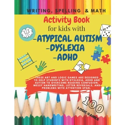 Writing, Spelling & Math Activity book for kids with ATYPICAL AUTISM/DYSLEXIA/ADHD: Activities to improve writing and reading skills Brain Training 100 LOGIC GAMES!