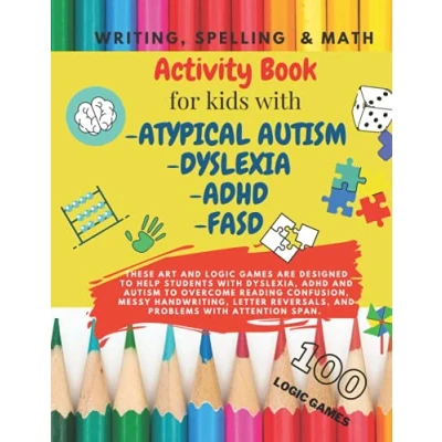 Writing, spelling & Math activity book for kids with ATYPICAL AUTISM, DYSLEXIA, ADHD, FASD. 100 LOGIC GAMES!: Brain Training