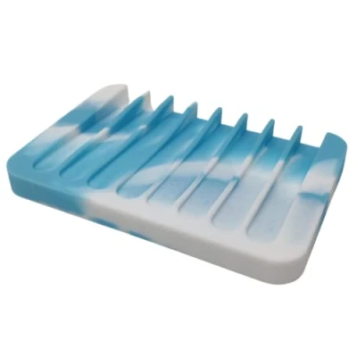 1 x Silicone Soap Dish for Bathroom, Kitchen or Shower [Blue/White] Size - 11.5x8x1cm The silicone material is easy to clean when not in use Angled design allows for excess water to drain away and avoid build-up As the soap dish is made from silicone it is flexible and won't break when dropped