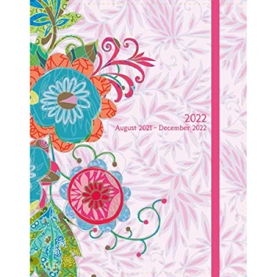 Wsbl 17-month format (August 2021 - December 2022) Three yearly views Elastic band closure; back pocket Sewn thread binding with decorative stitching on cover