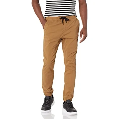 WT02 Men's Jogger Pants in Basic Solid Colors and Stretch Twill Fabric Casual, New Tobacco, X Large