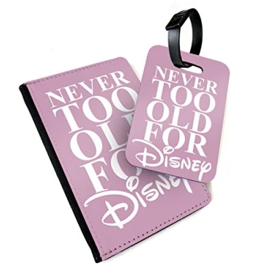 WTF Never Too Old for Disney Pink Printed Art Faux Leather Passport Cover/Luggage Tag (Holder/Luggage Combo)