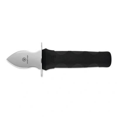 The Wüsthof oyster knife with protective edge is a safe and precise choice for opening oysters and other shellfish. Thanks to the short, sturdy blade made of high-quality knife steel and the integrated protective edge between blade and handle, you work with optimum control and protection . Ideal for carefully loosening the sphincter without damaging the delicate oyster meat. The 6.4cm satin blade is strong enough to effortlessly wedge between oyster shells. The 11cm plastic handle is comfortable to hold and has non-slip properties, so you can keep a firm grip even with wet hands. The steel protective edge prevents your fingers from coming into contact with sharp shell edges — extra safety, even when opening stubborn oysters . Product specifications * Total length: 16.5 cm * Blade length: 6.4 cm * Weight: 41 grams * Blade material: Knife steel (X50CrMoV15 stainless steel) * Handle material: Synthetic plastic (polypropylene) * Application: Oysters and other shellfish Warranty Wüsthof offers a lifetime warranty on this product for material and manufacturing defects. Damage due to incorrect use is not covered by the warranty. Cleaning Clean the oyster knife with warm water and a mild detergent. Hand washing is recommended to extend the life of the knife and maintain its quality. Make opening oysters safer, more precise and more comfortable with the Wüsthof oyster knife with protective edge – a reliable choice for any lover of fresh shellfish.
