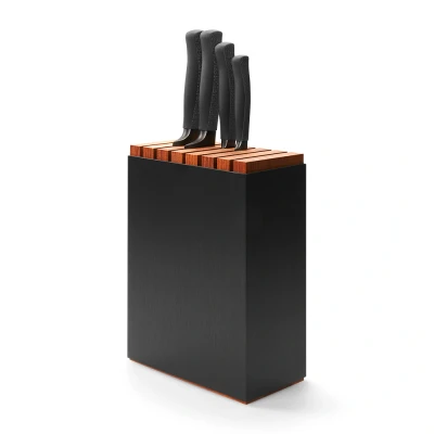 Kitchen KnivesWüsthof Performer Chef’s Knife 20 cm / 8″: Versatile and powerful – the all-rounder for every challenge. Wüsthof Performer Santoku 17 cm / 7″ Precise and delicate – for fine slices and perfect cubes. Wüsthof Performer Precision Double-Serrated Bread Knife 23 cm / 9″: Effortless and precise – for crusty or soft loaves as well as larger fruit.Wüsthof Performer Paring Knife 9 cm / 23″: Short and exact – for detailed work and delicate movements. The Knife Block of exquisite heat-treated beech, encased in black aluminium, is a dynamic design statement in your kitchen. Flexibly customisable, it offers space for up to seven knives and keeps them all safely at the ready