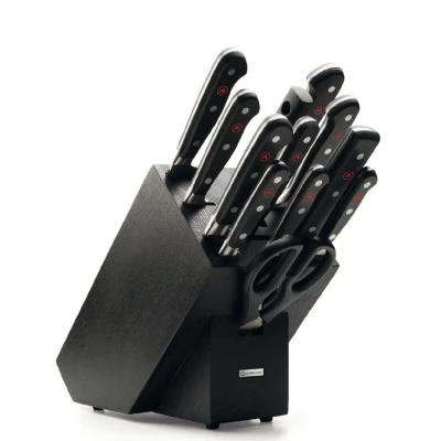 Donaghy Bros#html-body [data-pb-style=UAX0VX4]{justify-content:flex-start;display:flex;flex-direction:column;background-position:left top;background-size:cover;background-repeat:no-repeat;background-attachment:scroll}Classic 13-piece Knife Block Set The handy knife block provides protection for your blades as well as a visual compliment to your kitchen decor. Made from high-quality ash, black. 12 piece set. Knife block: Length 29 cm, wide 15 cm, height 24 cm. CONTENT: 1040103208 - Paring knife1040100410 - Paring knife1040101614 - Serrated utility knife1040101123 - Bread knife1040131317 - Santoku9040190016 - Straight meat fork3049700423 - Sharpening steel1040100723 - Carving knife1040100120 - Chef´s knife1040101414 - Boning knife1129500916 - Cleaver1049594907 - Kitchen shears2099601203 - Knife block