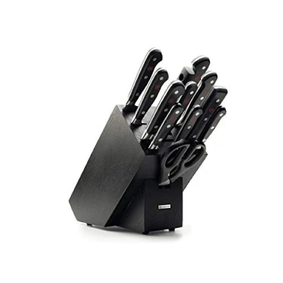Amazon MarketplaceKNIFE SET – Includes 3 inch paring knife, 4 inch paring knife, 5 inch serrated utility knife, 5 inch boning knife, 6 inch cleaver, 7 inch santoku, 8 inch chef’s knife, 9 inch bread knife, 9 inch utility knife, 6 inch meat fork, 9 inch honing steel, come-apart kitchen shears WÜSTHOF CLASSIC SERIES – The full tang, triple riveted handles of the classic line offer the widest range of cutlery that can satisfy every home cook or professional chef, the Wüsthof classic series has been our best-selling series for generations RAZOR SHARP – High carbon stainless steel blades, precisely cut with the latest state of the art technology for incredible sharpness and easy maintenance, Wüsthof kitchen knives are hand wash only PRECISION FORGED – Forged from a single block of high carbon stainless steel and tempered to 58-degree HRC, the precision edge technology (PEtec) yields a blade that is 20 percent sharper with twice the edge retention than previous models, Wüsthof classic series knives feature a full bolster and finger guard CENTURIES OF TRADITION – Family owned for seven generations, Wüsthof was founded in solingen, Germany over 200 years ago, Wüsthof’s cutlery cutlery carries the solingen name, a designation reserved for products that meet the strictest quality standards