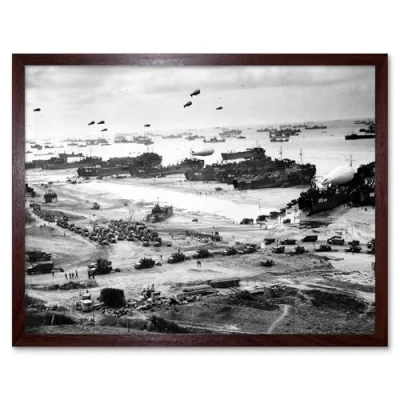WWII War Us Landing Ships Omaha Beach D day 1944 Photo Art Print Framed Poster Wall Decor 12x16 inch