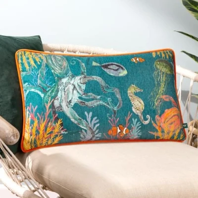Wylder Abyss Sea Creatures Chenille Feather Rich Filled Cushion