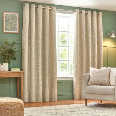 Wylder Grantley Jacquard Eyelet Curtains Beige Size 168 cm x 183