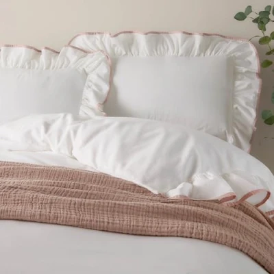 Wylder Nature Blousey Ruffled Cotton Pillowcase Pair Pink