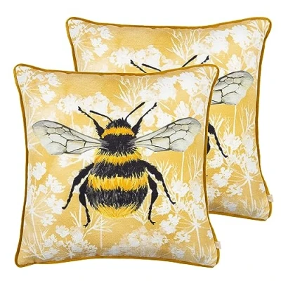 Wylder Nature Manor Bee Feather Filled Cushions Twin Pack, Yellow, 43 x 43cm