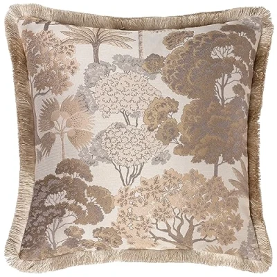 Featuring majestic tropical tree species woven beautifully together on a jacquard base. Complete with a soft velvet reverse, luxe yarn fringed trim and hidden zip fastening. Made of 100% Polyester fabric, making this cushion super soft, yet durable. Dry Clean Only. Do Iron. Pair with our Woodlands eyelet curtains to complete a stunning co-ordinated look!