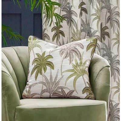 Featuring an abundance of tropical Palm trees, woven on dry-handled jacquard fabric, available in a range of contemporary colours. Complete with a reversible design, piped trim and a hidden zip fastening. Made with 100% Polyester, this fabric is super soft yet durable and does not stain easily. Pair with the Galapagos eyelet curtains for a coordinated tropical look. Dry Clean and Cool Iron Only.