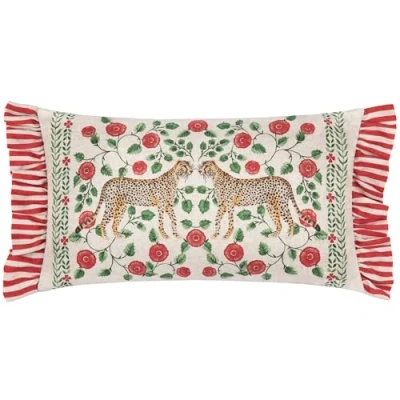 Wylder Tropics Okara Leopards Printed Ruffle Polyester Filled Cushion Linen/Red 30x50cm