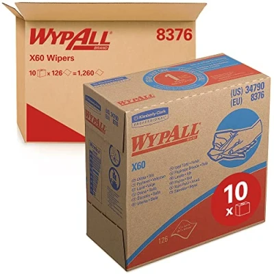 WypAll X60 Cloths 8376 Cleaning 10 Pop Up Boxes x 126 White Wiping (1,260 total)