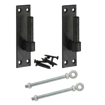 Wyre Direct Metal Gate Hinges Heavy Duty Set, Adjustable Kit for Wooden Gates, with 12mm Pin Bracket & X 100mm Eye Bolts, Hardware