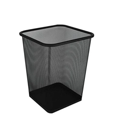 WYRKYP Trash Bin,Wastebasket Can Metal Mesh Wrought Iron Bin Kitchen Without Lid Bedroom Office Rubbish Organizer Waste Bins for Bathrooms Home Offices,Black Square,Large