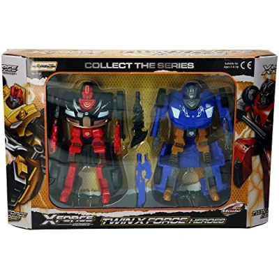 X Force Twin Heroes Robot Car Transformer Toy Set, 2 Action Figures with Weapons, Ages 3+