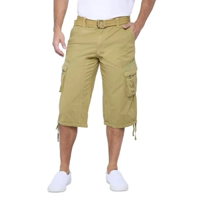 X RAY Men's Belted Tactical Cargo Long Shorts 18 Inch Inseam Below Knee Length Multi Pocket 3/4 Capri Pants, Khaki, 22