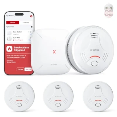 X Sense Smart Smoke Alarm with SBS50 Base Station for Home Magnetic Mount, Wireless Interlinked Fire Alarm, 10 Year Life and Replaceable Battery, App Function, SD11 MR31