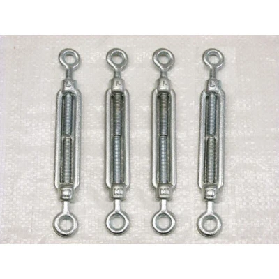 General description Eye & Eye Forged Straining Screw, Open Body Turnbuckle designed for tightening, tensioning, and adjusting various materials such as chain, rope, and cable. These straining screws are particularly popular in the caravaning industry and feature a galvanised finish for long-lasting protection. Technical specifications Quantity: 4 Product Code: SFFOREE12/04 Available sizes: 5 mm: A=5, B=70, C=7.5, D=117, E=164 6 mm: A=6, B=109, C=9, D=165, E=249 8 mm: A=8, B=108, C=10, D=175, E=251 10 mm: A=10, B=126, C=14, D=198, E=275 12 mm: A=12, B=125, C=16, D=230, E=315 16 mm: A=16, B=169, C=22, D=335, E=450 20 mm: A=20, B=202, C=24, D=335, E=515 21 mm: A=21, B=220, C=29, D=400, E=540 23 mm: A=23, B=250, C=29, D=445, E=610 29 mm: A=29, B=255, C=31, D=480, E=630 31 mm: A=31, B=295, C=36, D=525, E=705
