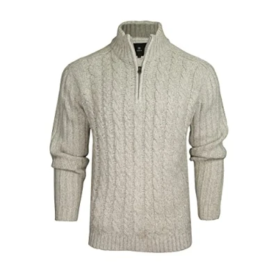 Men’s quarter zip jumper in a chunky cable knit finish, designed in a comfortable regular fit for everyday wear and smart casual styling with jeans, chinos or work outfits Quarter zip funnel neck design allows adjustable warmth and wind protection, making this 1/4 zip jumper mens style ideal for cold weather layering and outdoor comfort Durable acrylic knit construction delivers lightweight insulation, soft feel and reliable shape retention, making this quarter zip jumper men option suitable for winter wear Classic cable knit texture adds visual depth and timeless appeal, giving this zip neck jumper men design a traditional look with modern practicality Easy-care knitwear that’s machine washable and built for everyday use; a versatile zip jumper men pullover that transitions easily from casual weekends to smart casual outfits