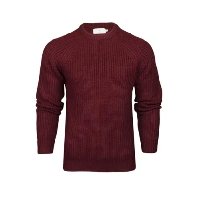 Xact Men's Chunky Fisherman Knit Jumper, Crew Neck, Raglan Sleeve (Burgundy) XL