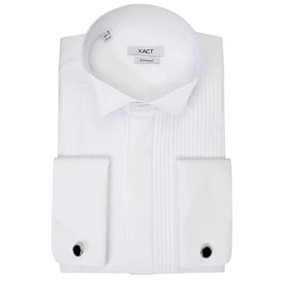 Xact Men's Formal Tuxedo/Dress Shirt with Double Cuff and Links (White Wing Collar Pleated Fly Front) 16"