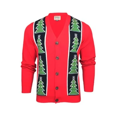 Novelty Fair Isle Pattern: Stand out with festive flair, showcasing a unique and playful design for holiday gatherings 12 Gauge Knit Acrylic: Enjoy warmth without bulk, as the finely crafted knit provides comfort and style in chilly weather Button-Up Jacquard Design: Easily adjust your comfort level while adding a touch of sophistication to your Christmas ensemble Machine Washable: Effortlessly maintain the cardigan's vibrant look, ensuring long-lasting wear through the holiday season and beyond Ideal Gift for Christmas Jumper Day: Spread joy with the perfect present, combining festive spirit and cozy fashion for a memorable celebration