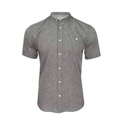 Xact Mens Short Sleeved Linen Mix Grandad Nehru Shirt (Black Wash) XL