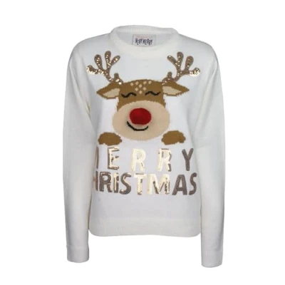 Eye-Catching Sequined Details: Elevate your festive attire with the unique and captivating design of this jumper, adorned with sparkling sequins that catch the light and add a touch of glamour to your holiday look Cozy Crew Neck Comfort: Embrace warmth and comfort in style with the classic crew neck design, providing a snug yet relaxed fit that is perfect for lounging by the fire or joining in on festive gatherings with friends and family Snug Fit for Warmth: The ribbed cuff and hem ensure a secure and snug fit, keeping the warmth in and the cold out during chilly winter days and evenings, allowing you to enjoy the holiday season in comfort and style Effortless Maintenance: Designed for convenience, this jumper is machine washable, allowing you to easily keep it clean and fresh for each wear without the hassle of handwashing or special care instructions, leaving you more time to enjoy the festive season Versatile Holiday Wear: Whether you're celebrating Christmas Jumper Day at the office or attending a festive soirée with friends, this jumper is the perfect choice, combining style and comfort for all your holiday festivities