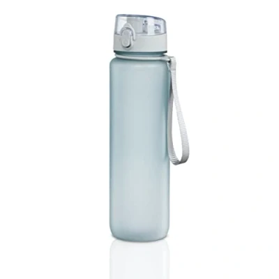 Sports water bottle with sports cap: with the push of a button, the snap closure of the bottle opens and quench your thirst immediately during jogging, cycling, hiking and fitness Leak-proof even with carbonated drinks: silicone seal in the lid and safety closure on the press stud fastener, resistant to fruit acids, suitable for still water, sparkling water and fruit juice Water bottle with removable fabric strap: when traveling, drinking in hand or quickly within reach on the carabiner of the running belt, running or hiking backpack CLEAR WATER BOTTLE - See how much is left to drink, large mouth for quick drinking without sucking or squeezing, in the screw cap with wide mouth for adding ice cubes and fruit Box contents: 1 x drinking bottle (1 L, food safe, BPA-free, lid with safety bar, handle)