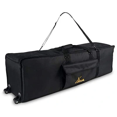 Robust hardware trolley, generously padded Comfortable handles, shoulder strap Stable plastic rollers Fully open top Size approx. (l x w x h): 115 x 35 x 35 cm