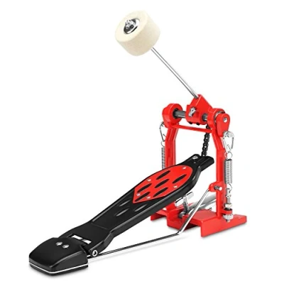 Stable single-pedal, metal pedal with red base plate Simple chain, adjustable spring tension Felt beater, heel piece rubber pad Clamping screw for mounting to bass drum Including tuning key and allen key