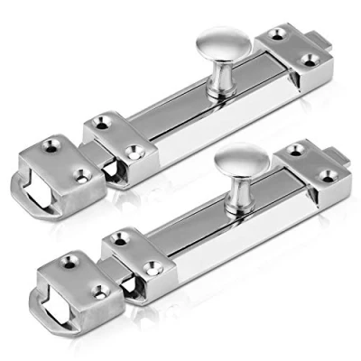 FEATURES: These XFORT sliding bolts are a common feature in securing wooden doors and gates. They comprise of a flat solid steel shoot running in a long continuous guide attached by the backplate. The shoot is operated by hand using an attached metal knob. The shoot slides into a keep which is fixed onto an adjacent surface. WIDE APPLICATION: These door bolts can be used in a variety of situations including internal doors and securing storage units. This may to be keep valuables secure, keep children out of unsafe rooms or just to ensure certain doors remain closed such as attic doors, cellar doors, airing cupboards and other internal cupboards and cabinets. They can also be used as cupboard / cabinet locks, as a gate / shed hook and as bathroom or bedroom latches. SECURITY: These door latch bolts are strong and durable as they are made from solid steel. This neat finish will ensure the slide feature remains intact and they stay corrosion free. Quite often, they are used as an additional locking point on a door for increased security. SIZE AND FINISH: They are finished in beautiful, pristine polished chrome throughout. This gives them an elegant touch and ensures they complement other internal décor. They are available in two standard sizes; 100mm and 150mm length. Please refer to the images for full details on dimensions. EASY INSTALLATION: They are easy to install as they are surface mounted, which means they only require to be screwed in using the colour matched screws provided. All fixings required are supplied including the keeps and fixing screws., Manufacturer: Maher London Ltd