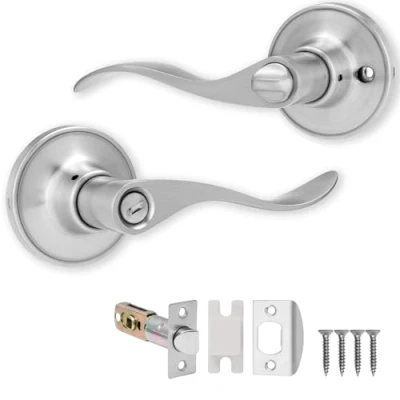 XFORT Cabriole Privacy Knob Set Satin Chrome, Door with Lock for Internal Wooden Bathroom Doors, Complete Tubular Latch