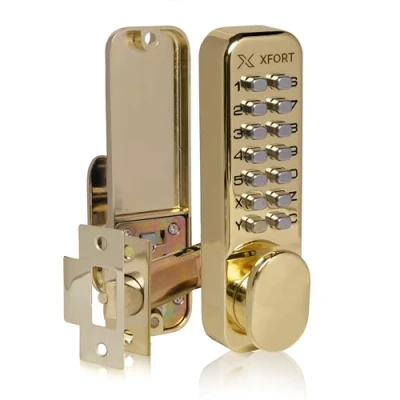 XFORT Digital Door Polished Brass, Keypad Combination Lock, Code Lock for Access Restriction, with Optional Hold Back Function.