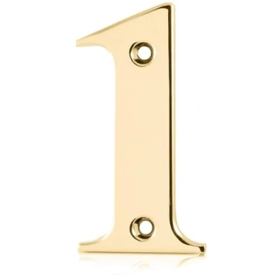 XFORT Polished Brass Front Door Number 1, House Suitable for All Types Including Wooden, uPVC, and Composite.