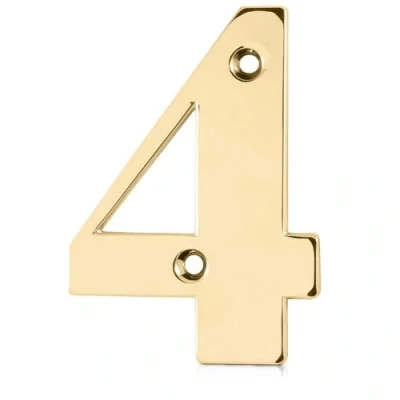 XFORT Polished Brass Front Door Number 4, House Suitable for All Types Including Wooden, uPVC, and Composite.