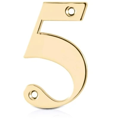 XFORT Polished Brass Front Door Number 5, House Suitable for All Types Including Wooden, uPVC, and Composite.